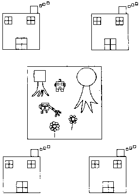 Lo strano omino rispose: " Il mio paese è vicino al vostro; si chiama Tuttorettangolo ed io ne sono il Sindaco. Da noi le case sono alte e in ogni casa, vi abitano tante famiglie; ecco perché non abbiamo problemi di alloggio! Forse se provaste anche voi, risolvereste il problema!"